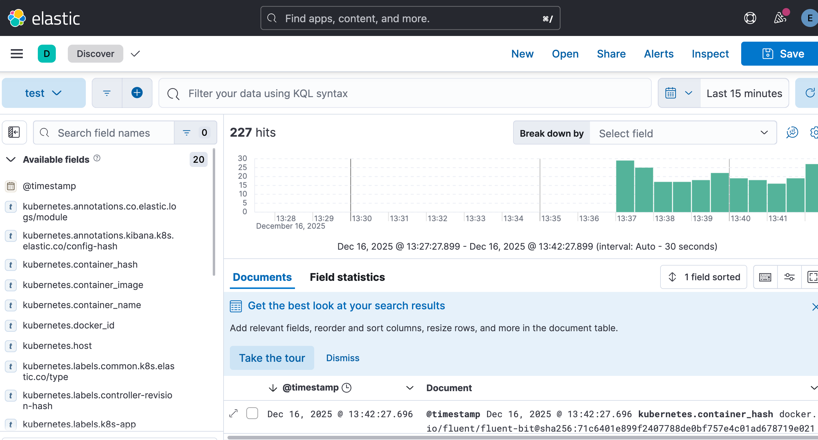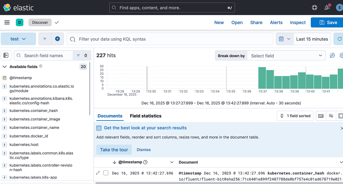 Unlike traditional Helm installs, using the ECK Operator allows Kubernetes to manage Elasticsearch as a native resource. We’ve also swapped Fluentd for Fluent Bit to keep our resource footprint tiny, ensuring that logging doesn’t eat into our application’s CPU and RAM.